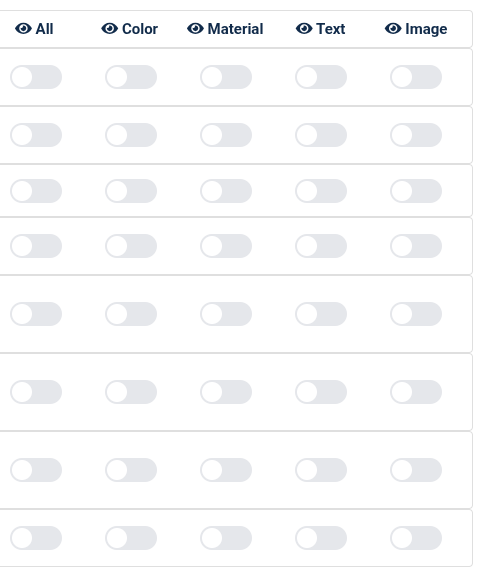 + Cột Name*: tên group material bên 3d khi import vào web 3d + Display Name: Đổi tên material dễ hiểu. => Mở file import trong blender. Kiểm tra group material của mẫu nón thường bao gồm: đai, lưới, vải => đổi tên material của 3d sang dispaly name cho dễ hiểu + collapse: cho phép hiển thị danh sách material của group material + Color: Hiên thị bộ phận của mấu nón + Material: Thay đổi vải và màu của material + Text: Custom thêm chỉnh sửa trên material + Image: Custom thêm chỉnh sửa trên material