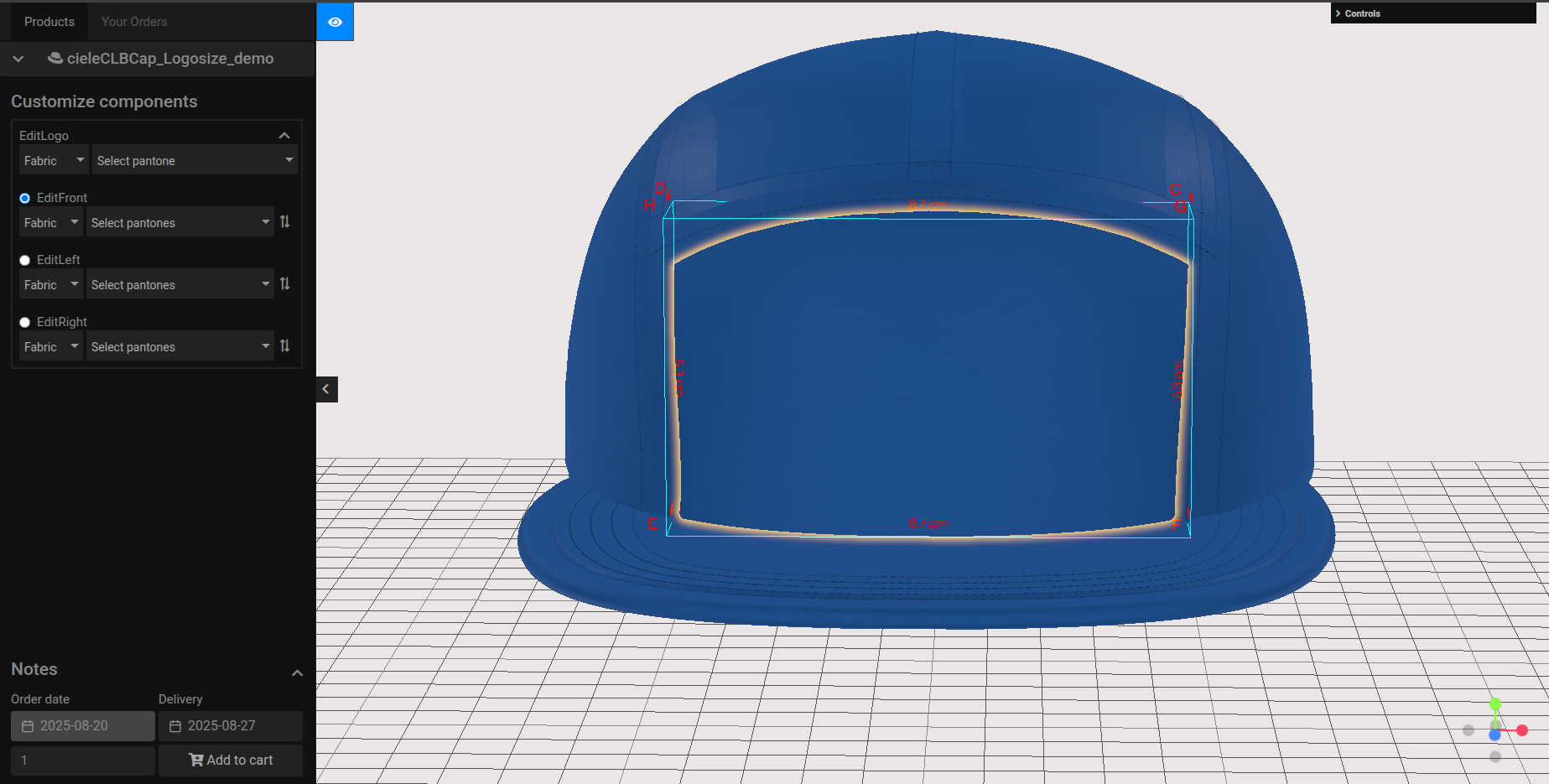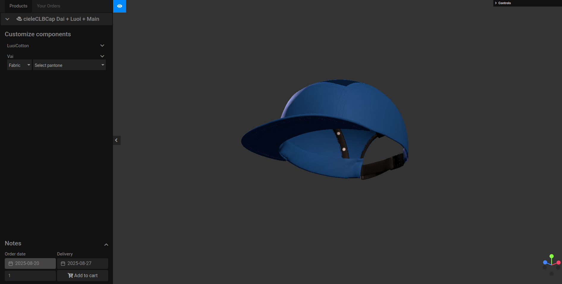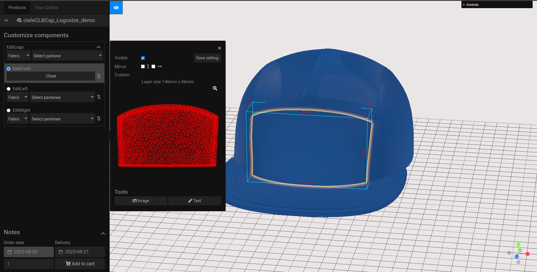 - Note: Bật Material trong setting mẫu nón chỉnh ( theo yêu cầu edit màu vải của material)