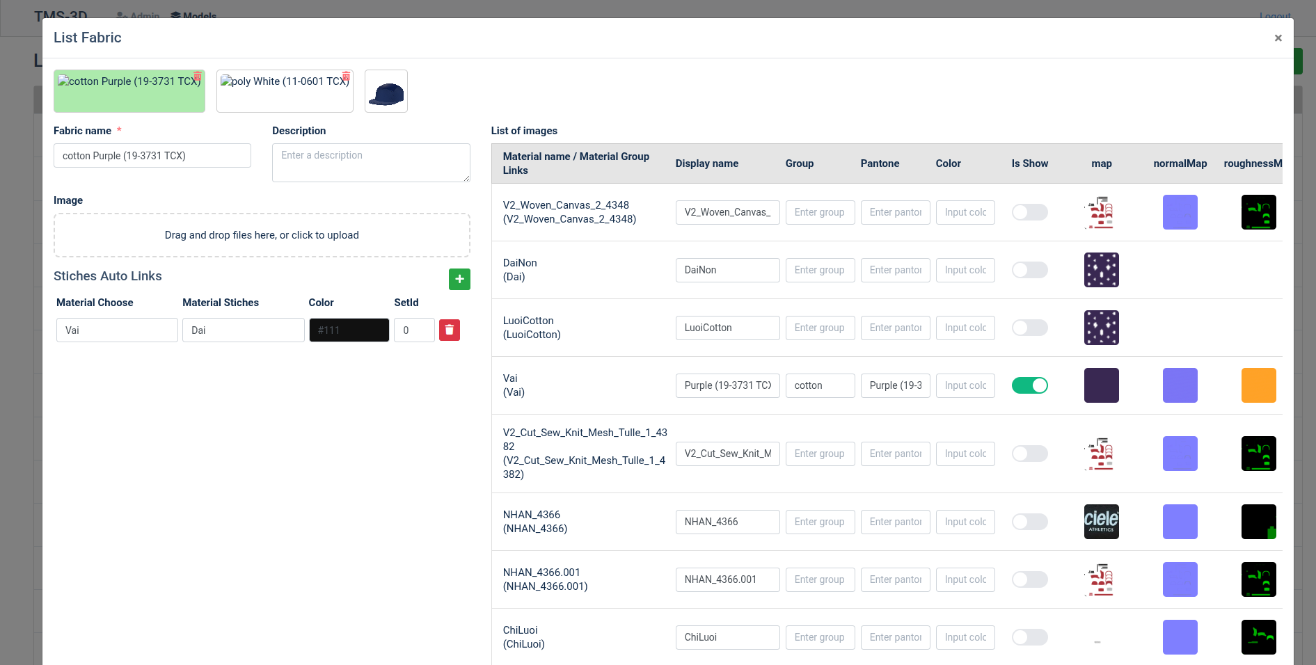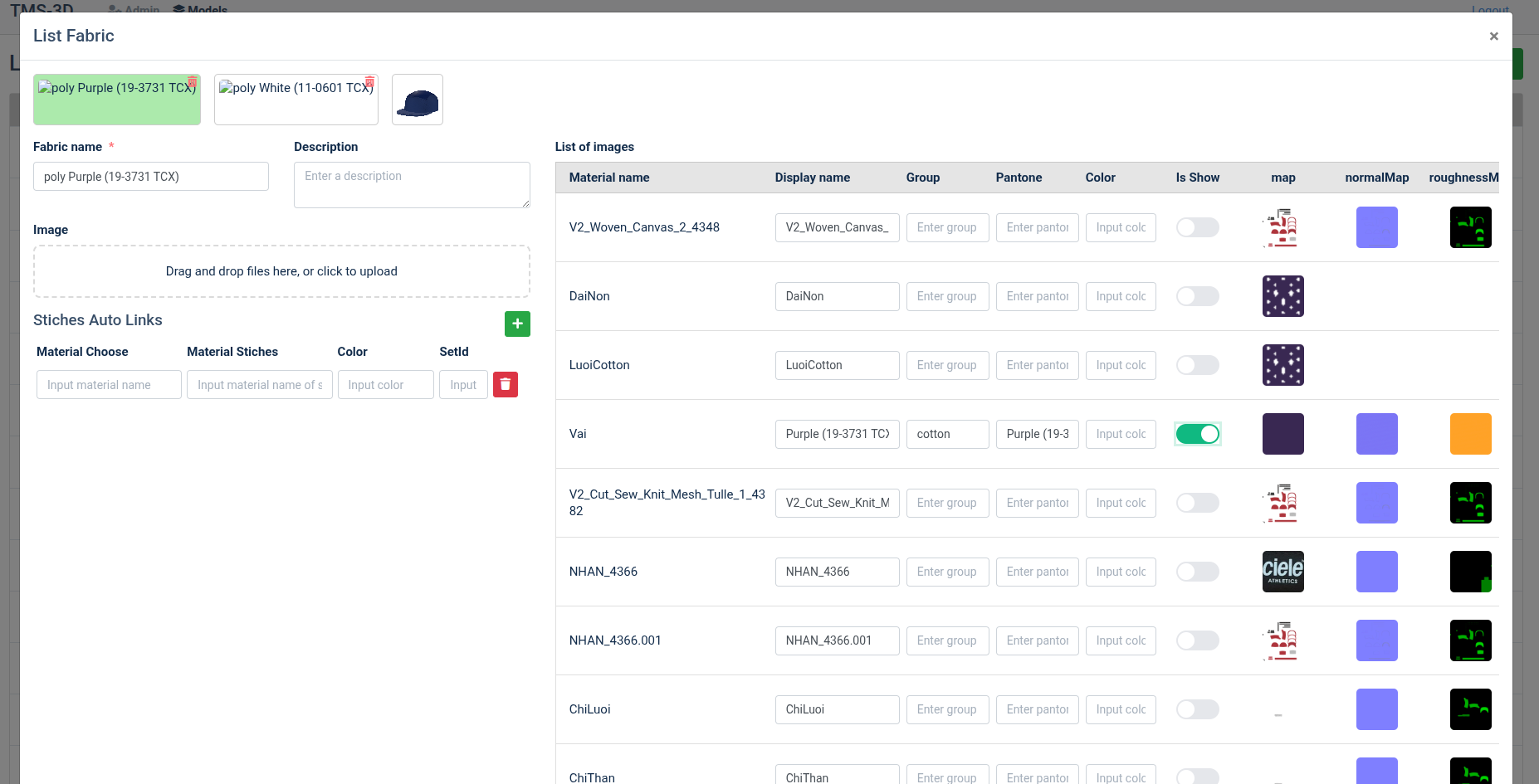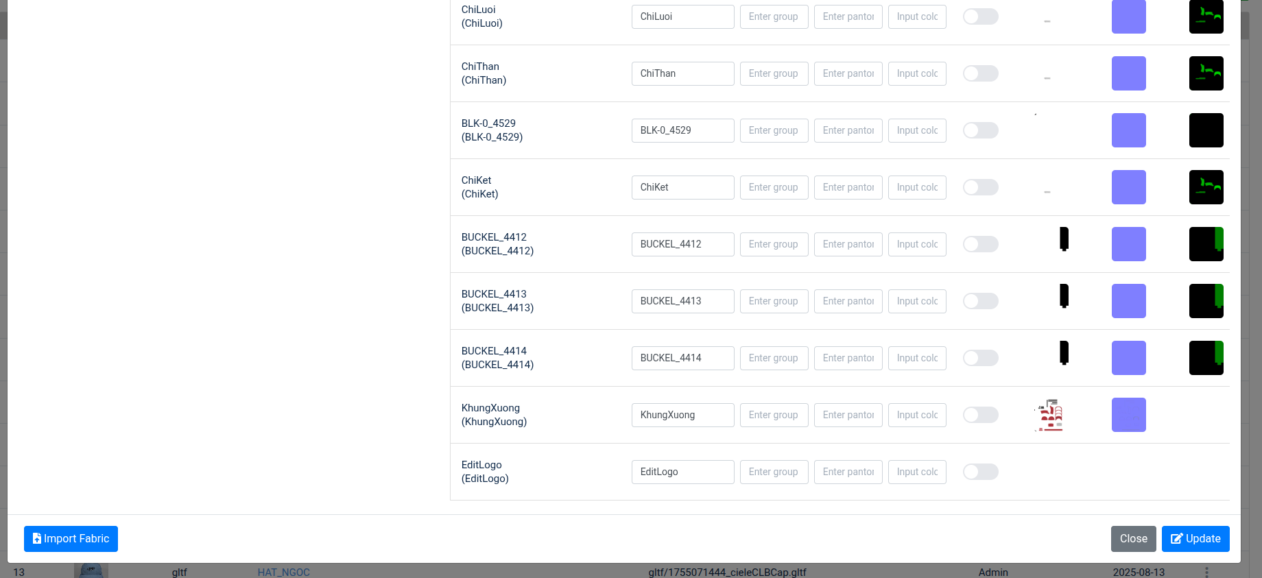 - Mở modal import fabric