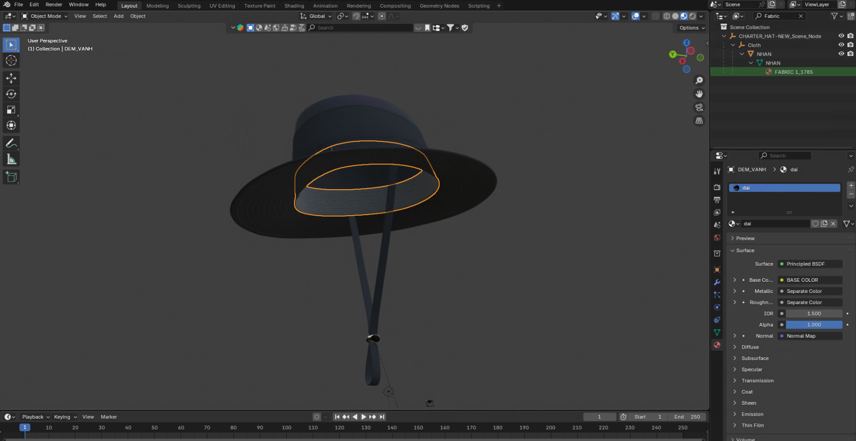 Bước 4: Setup material mẫu nón